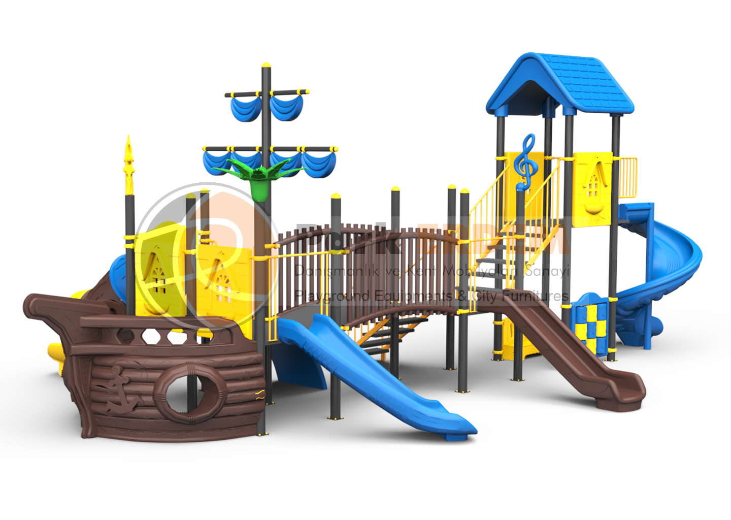 PET-21 Mini Gemi Temalı 3 Platformlu 3 Kaydıraklı Çocuk Oyun Parkı
