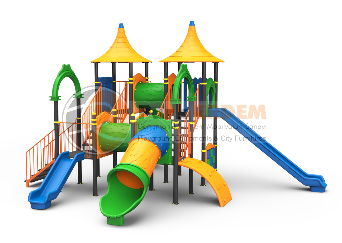 4 KULELİ ÇOCUK OYUN GRUBU 4 KAYDIRAKLI TÜP TÜNEL GEÇİTLİ EKO