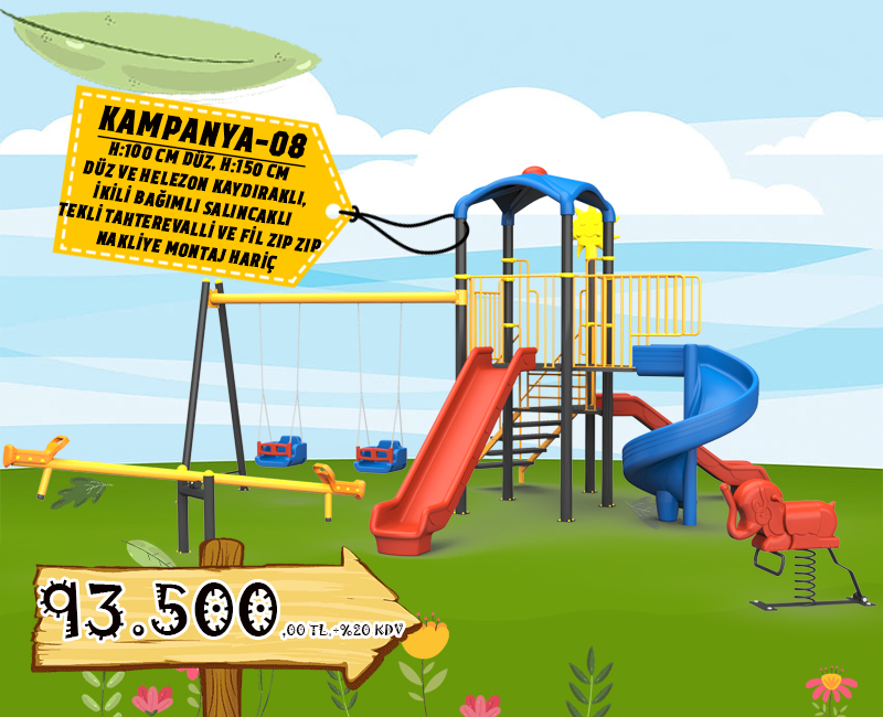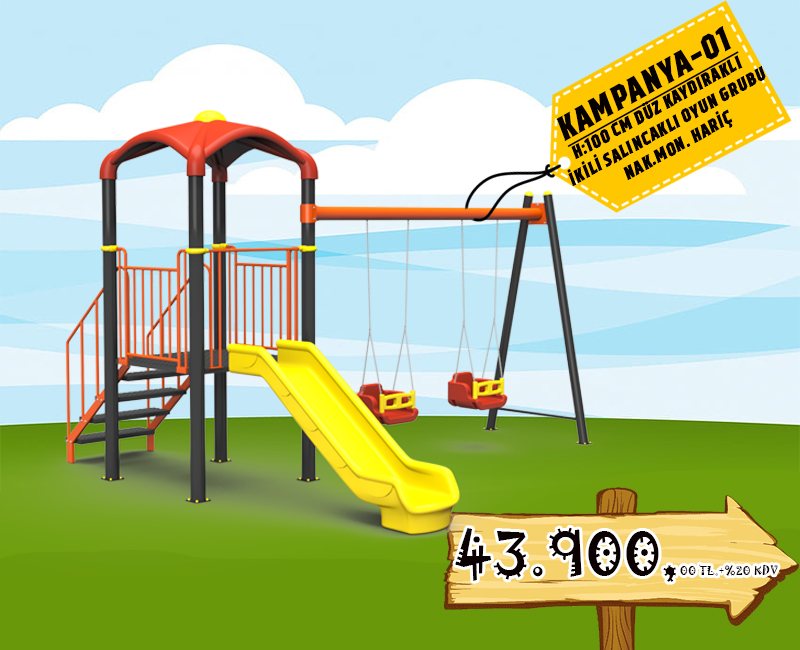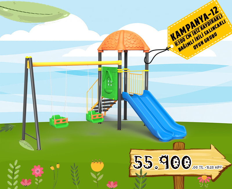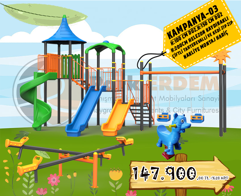 ÇOCUK OYUN ALANI SETİ - 3 KAYDIRAKLI 2 SALINCAKLI ÇOCUK OYUN GRUBU